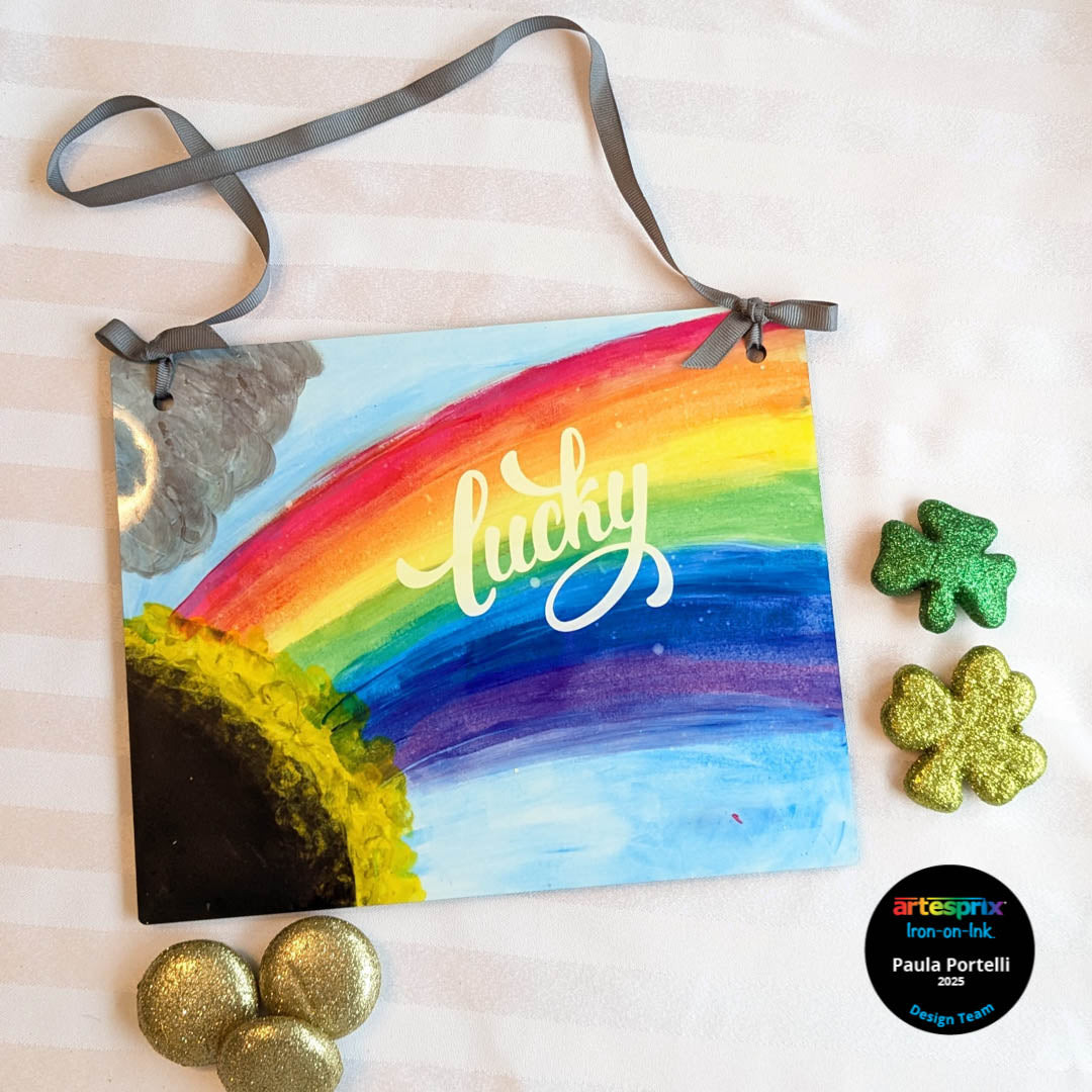 Under the Rainbow Sign using Artesprix Sublimation Acrylic Paint and Transfer Mask